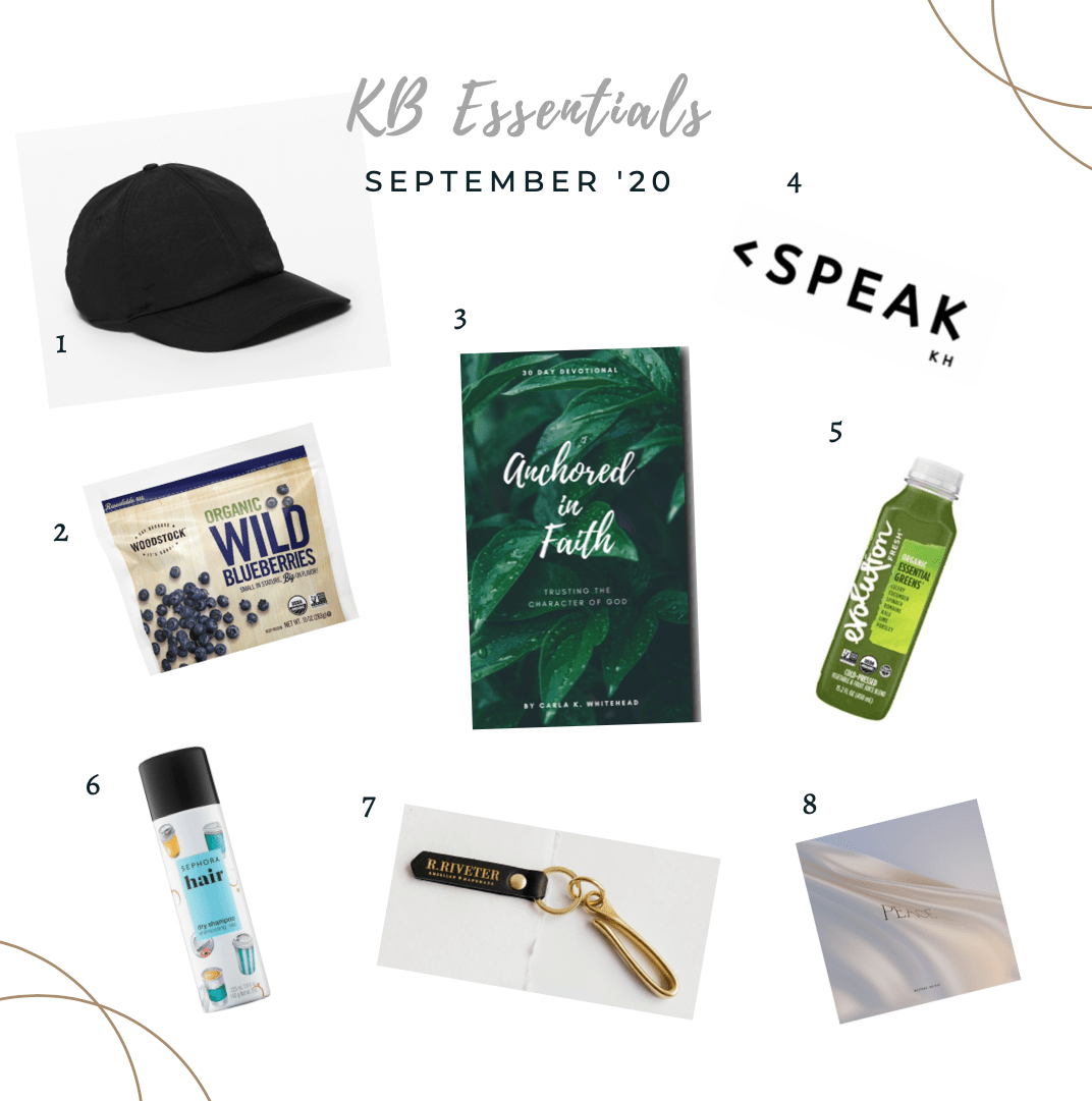 Hey, friends! I have collected a few of my favorite finds for this month. There is A LOT of green and peace themes flowing. I love how God is always moving us towards health. Sometimes it is a simple as a ball cap that keeps my hair in place or snacking on rejuvenating fruit. Most vital are the moments in His Word, thank you Anchored in Faith by Carla K. Whitehead.