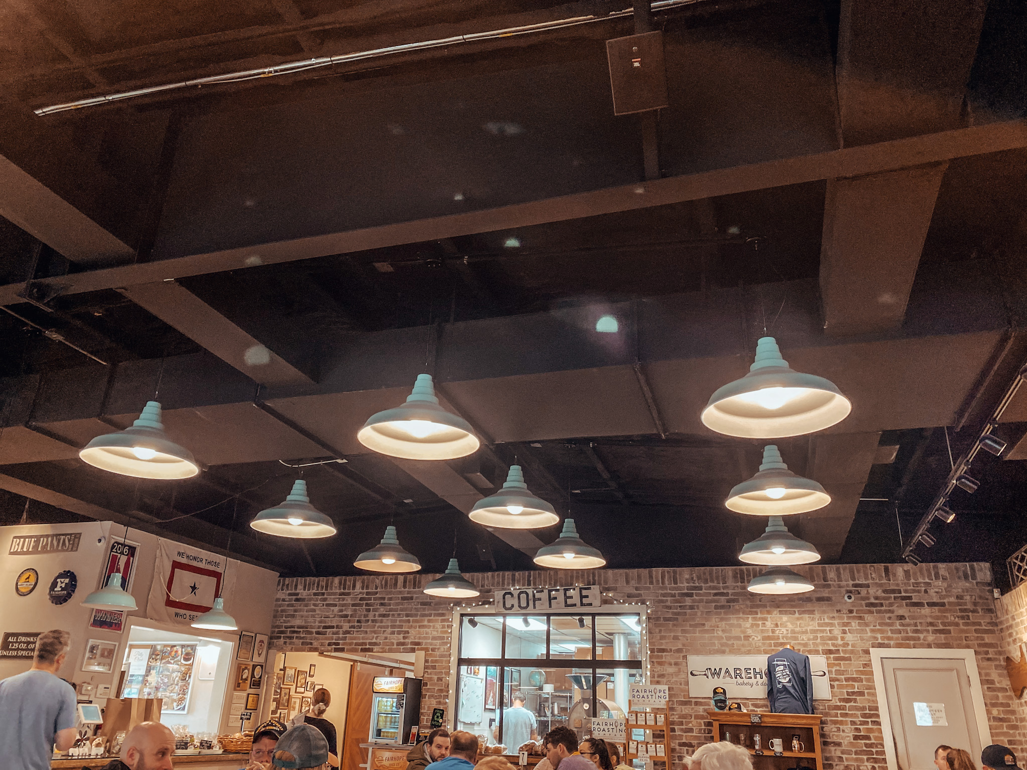 Warehouse Bakery & Donuts is a warm, welcoming experience. Its interior touches of turquoise seating and solid wood structure creates a farmhouse meets casual cafe setting. Patio seating is available, but those who dine in have a personal look into Fairhope Roasting Company.