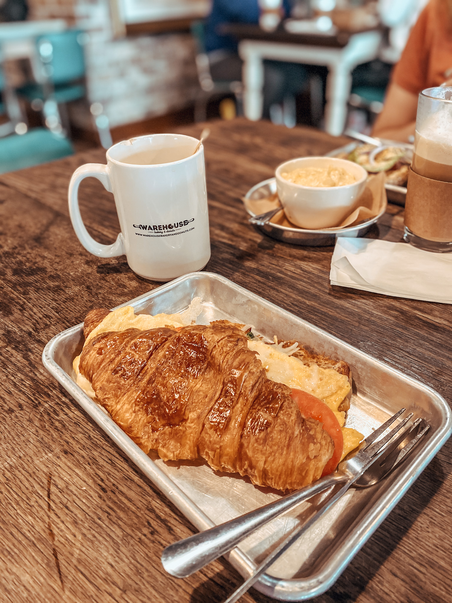 On a day trip to Fairhope, Alabama my friend, Tiffany, and I began our visit with hearty brunch. While walking up to front door of Warehouse Bakery & Donuts we eagerly sighed smelling the savory aromas spilling out of the brick building. There was a 20 minute wait for 10am seating, a great sign that we were in the perfect place for delicious baked dishes!