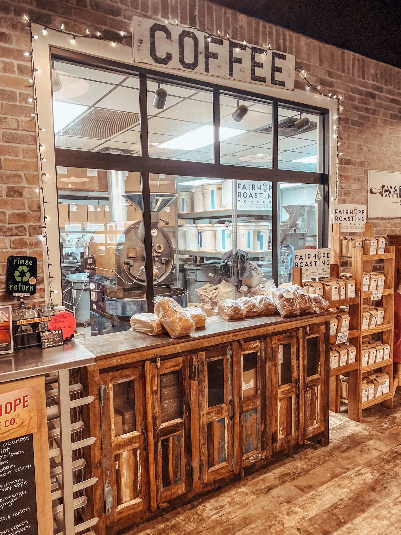 Roasted and served in house Fairhope Roasting Company is a locally owned, small batch speciality coffee roaster. If you hang out at Warehouse for spell you can watch the coffee roasting process while you sip.